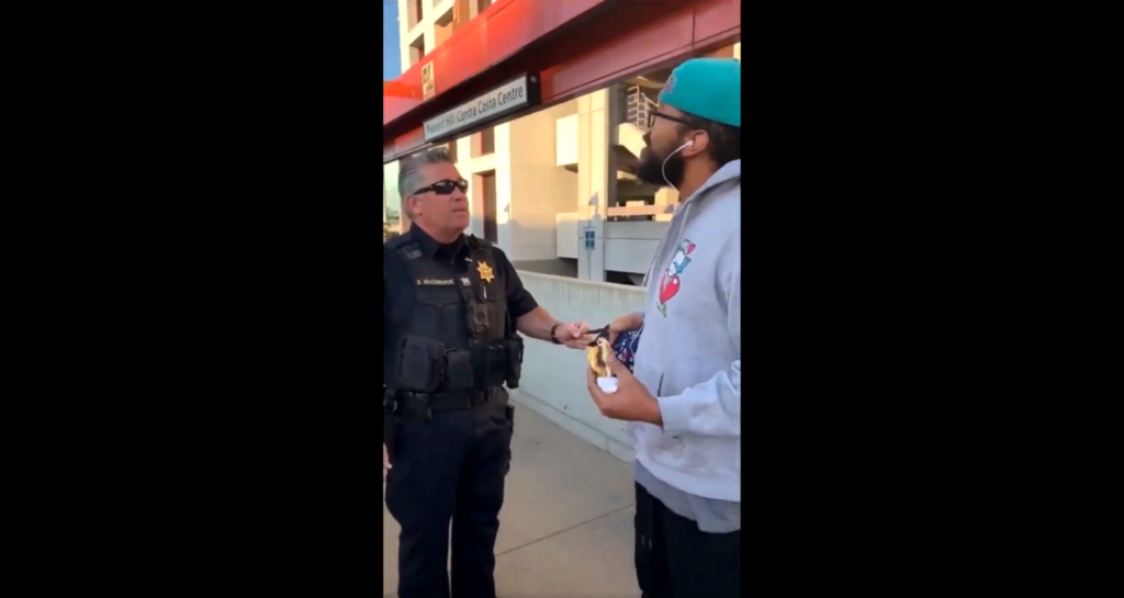 The general manager of the bay area rapid transit system apologized monday to a man who was detained and handcuffed by a. A police officer detained and cited a man eating a sandwich on a san francisco train platform, a confrontation captured on a viral. A passenger waiting to board a bay area rapid transit (bart) train in california last week was stopped by a transit agency police. A california man was detained by transit police for eating a breakfast sandwich on a train platform last week — a violation of state.