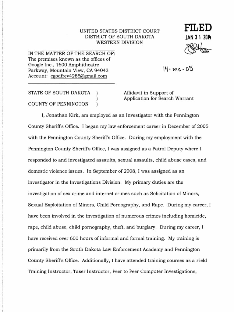 Gmail Search Warrant Affidavit South Dakota cgodfrey4285.pdf Search