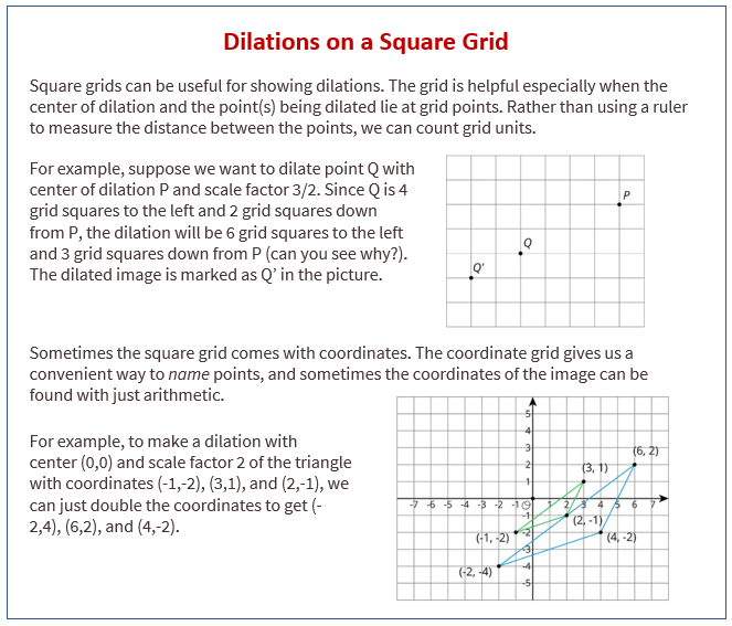 To perform a dilation, draw rays starting at the center of dilation through each point. Students use dilations in 20 assorted problems. The answers can be found below. Move each point along the ray. Label the center of dilation.