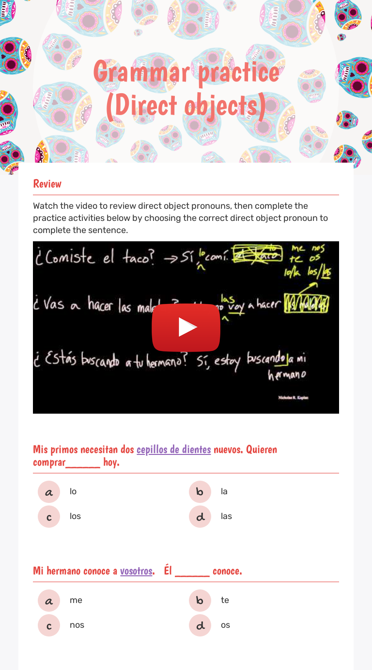 Grammar practice (Direct objects) Interactive Worksheet by Jayda Wynn