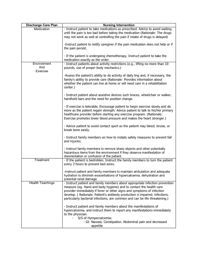 Discharge Care Plan Patient Pharmaceutical Drug