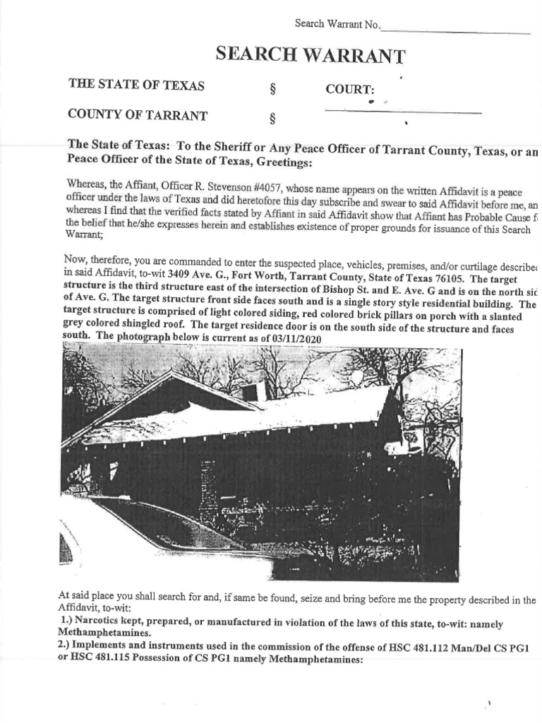 'No Knock' Search Warrant For Fort Worth Home PDF Arrest Warrant