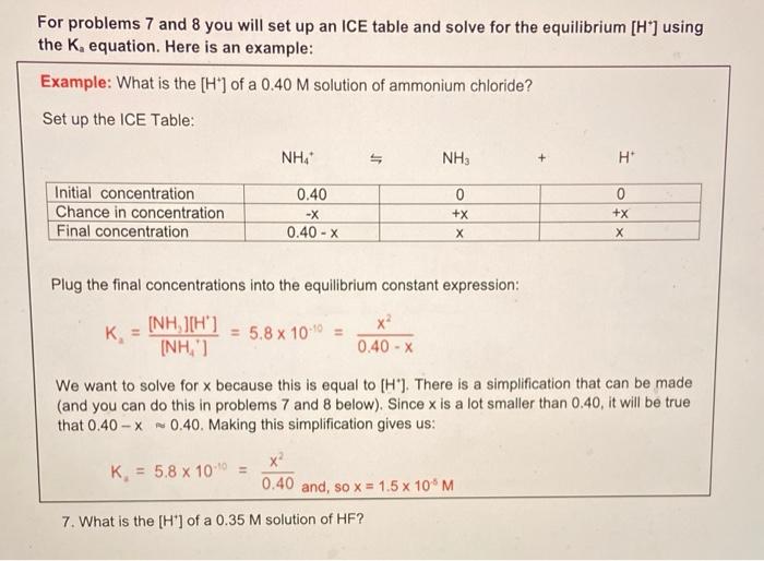Solved For problems 7 and 8 you will set up an ICE table and