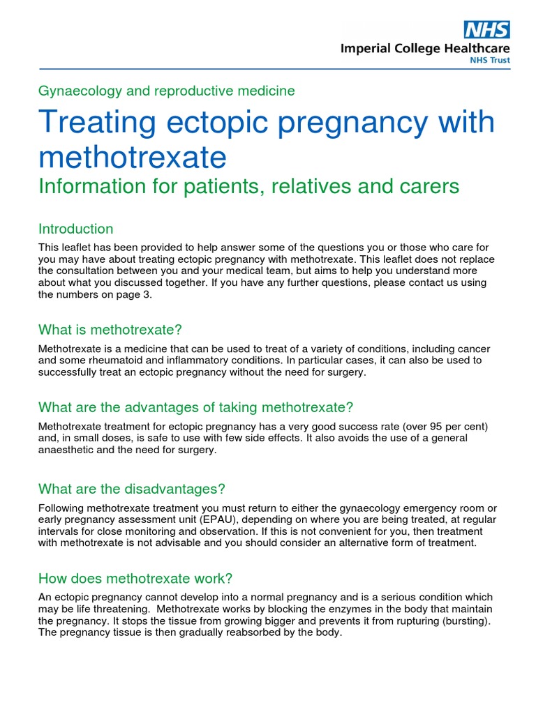 Methotrexate To Treat Ectopic Pregnancy Fact Sheet PDF Pregnancy