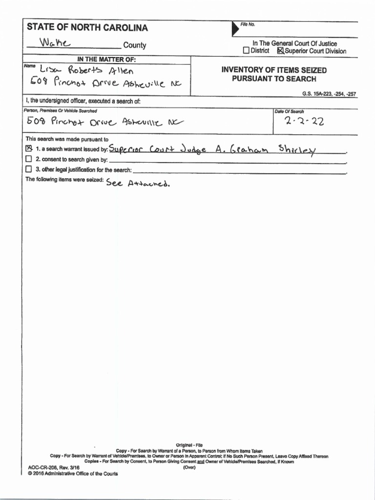 Roberts Search Warrant Inventory PDF