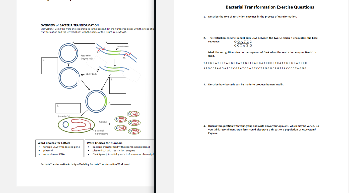 Modeling Bacteria Transformation Worksheet - Overview of bacteria transformation instructions: Using the word choices provided in the boxes, fill in the numbered boxes with the.
