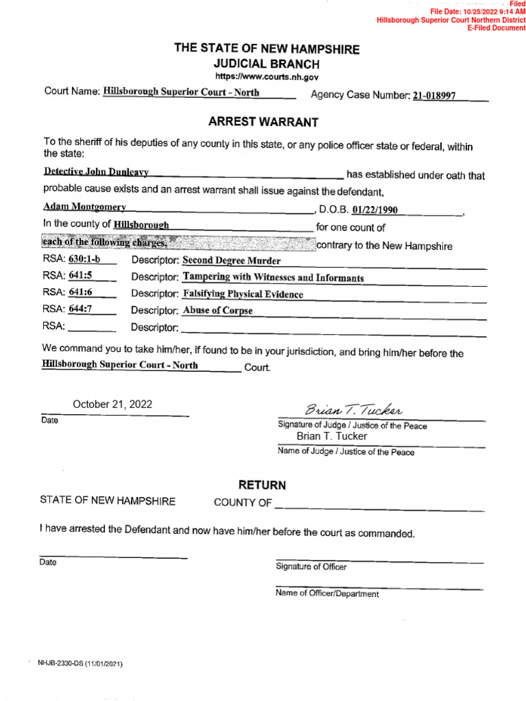 20221025 Arrest Warrant Probable Cause Statement Adam Montgomery NH PDF