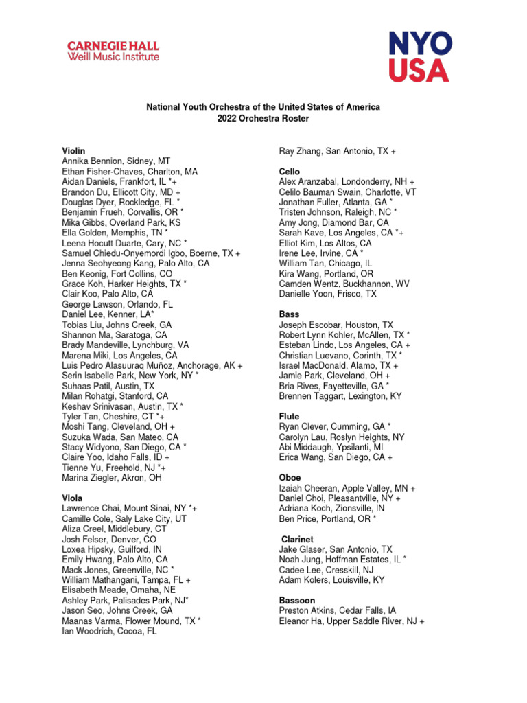 Nyo Usa Roster - Congratulations to the 103 outstanding young musicians selected for carnegie hall’s national.