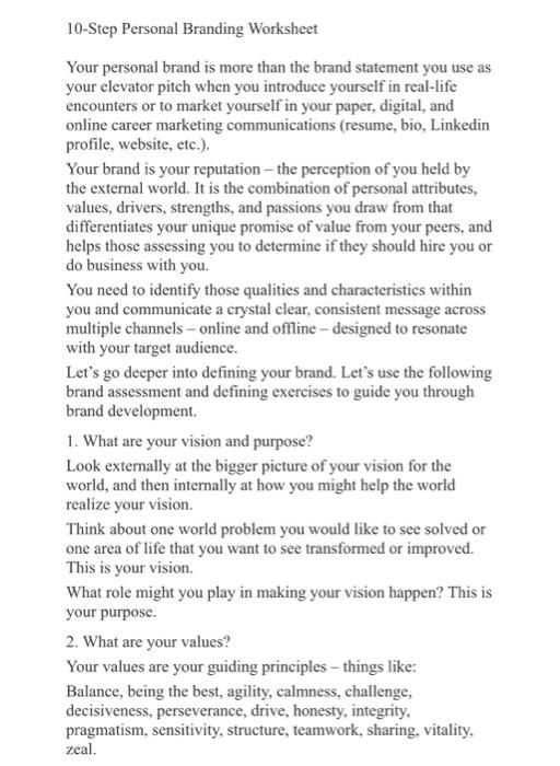 Defining your personal brand and working out how you can promote this far and wide in order to hit those key goals in your career plan. This personal brand experience is your opportunity to learn more about yourself, so you can make decisions and plans that maximize your. Fill in the answers to the following questions to help define what.