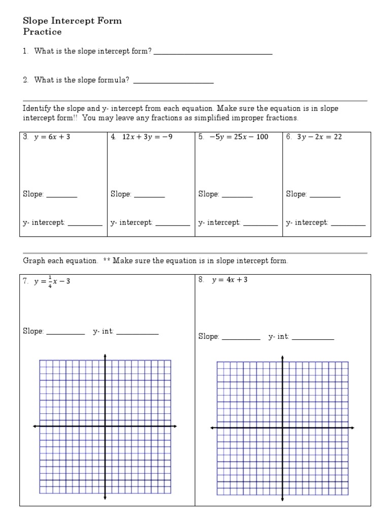 Free Answer Key Slope Intercept Form Worksheet Collection