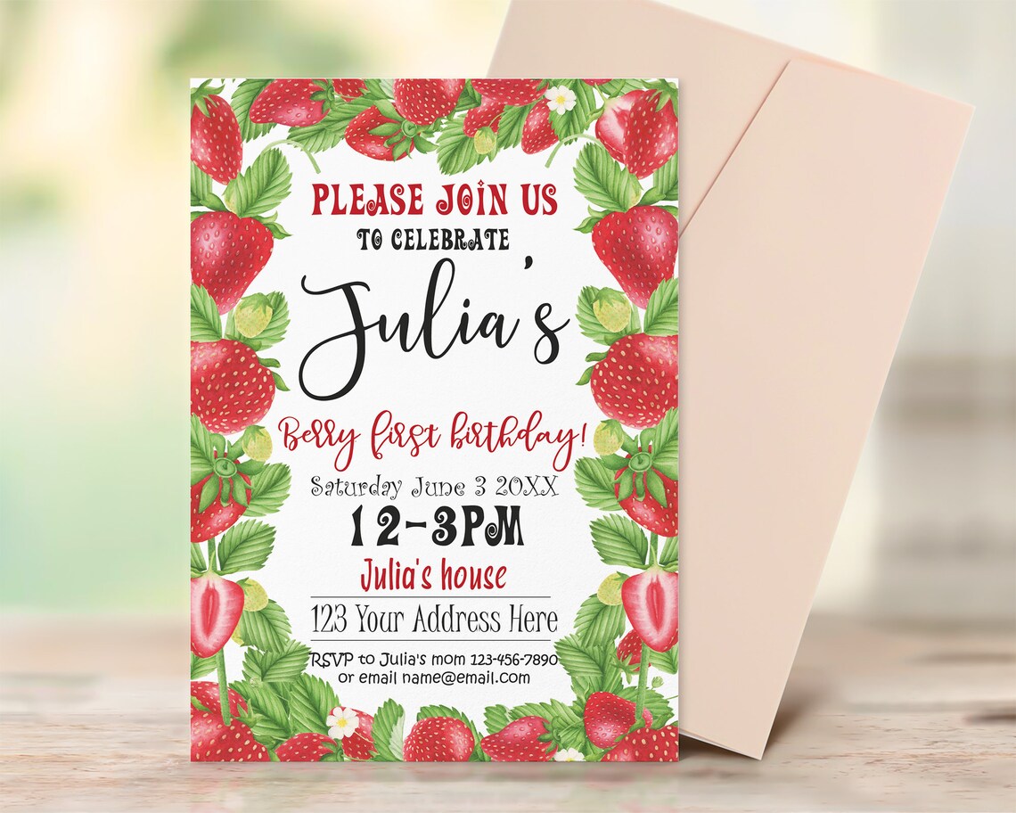Explore professionally designed strawberry templates you can customize and share easily. Easily customize 'strawberry' birthday invitation design with your text and photos. Create free strawberry birthday invitation flyers, posters, social media graphics and videos in.